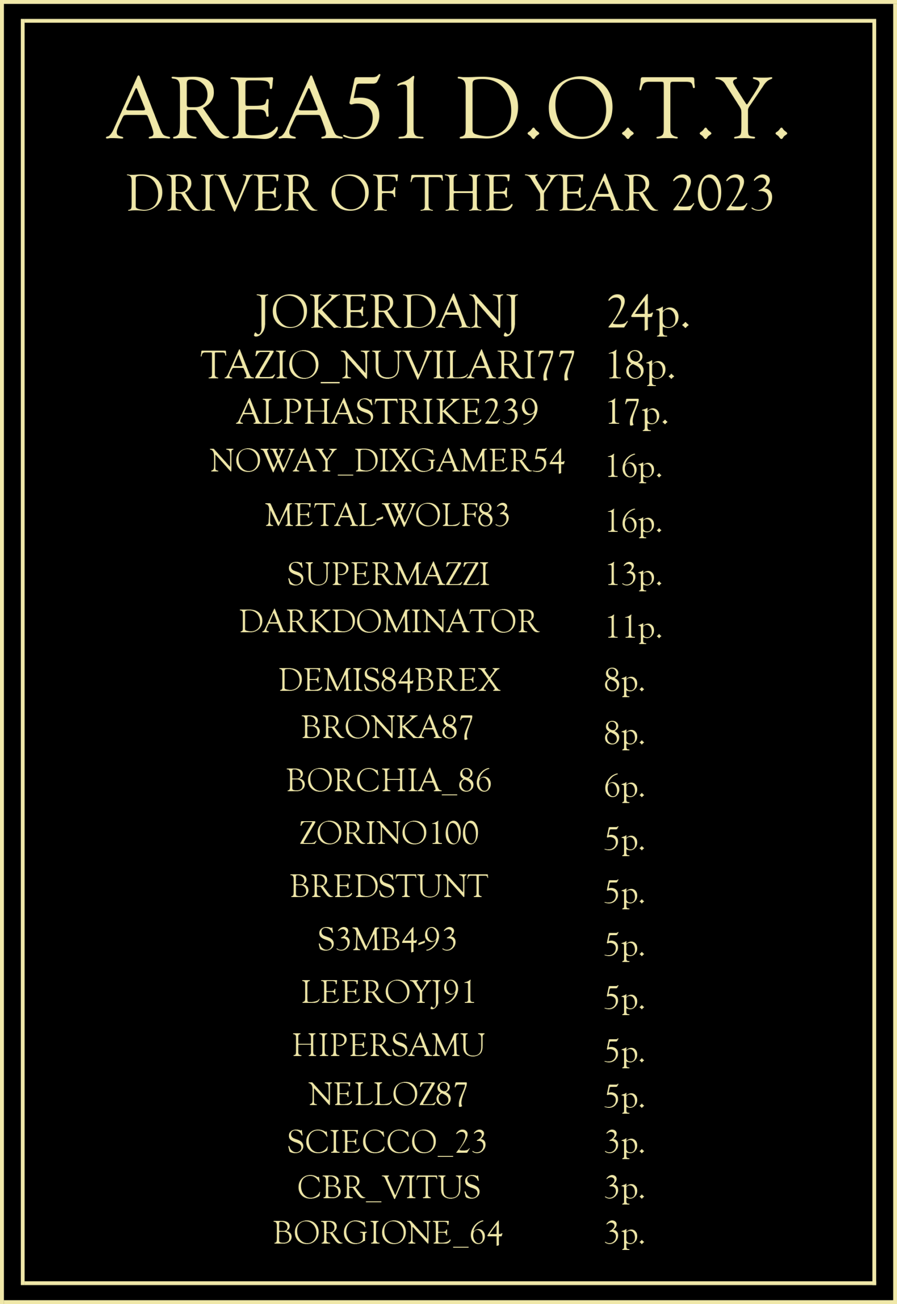 Classifica annuale dei piloti che si sono piazzati nei primi tre posti in eventi singoli o tornei