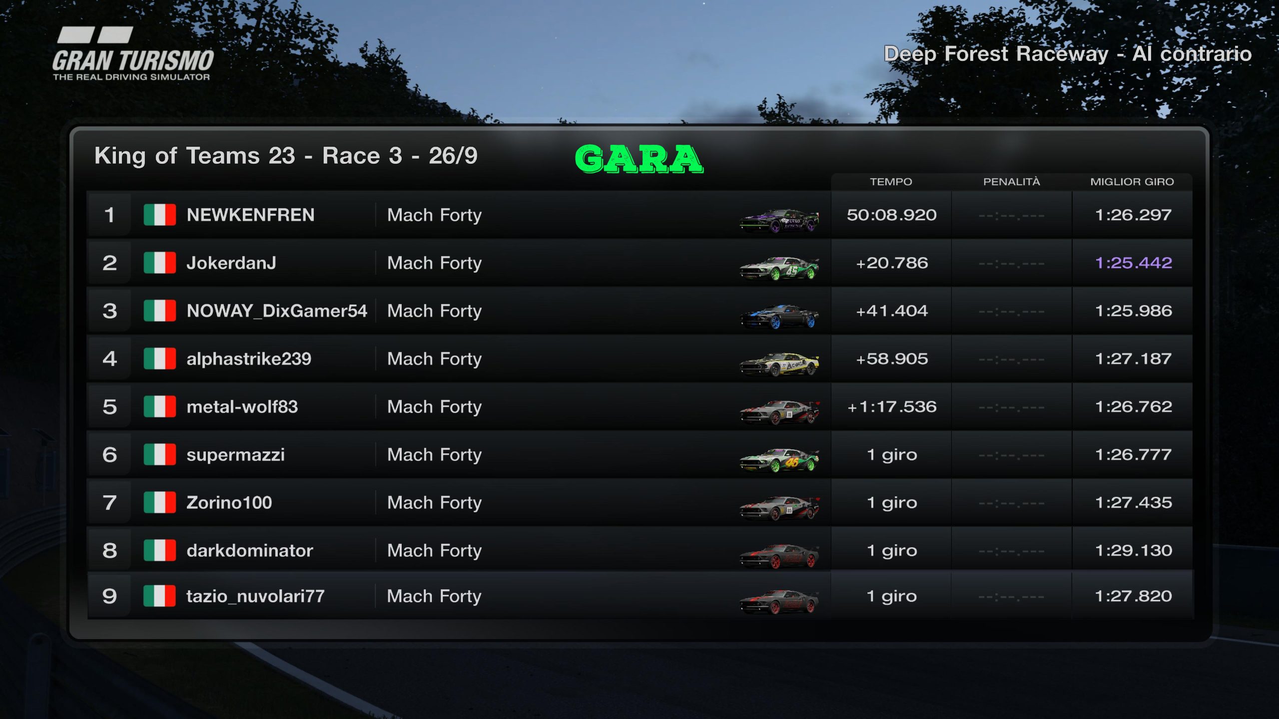 RACE 3 - MARTEDI 26 SETTEMBRE 2K23