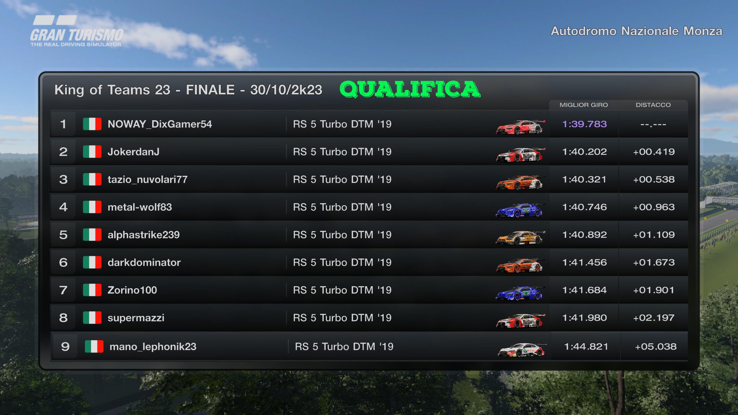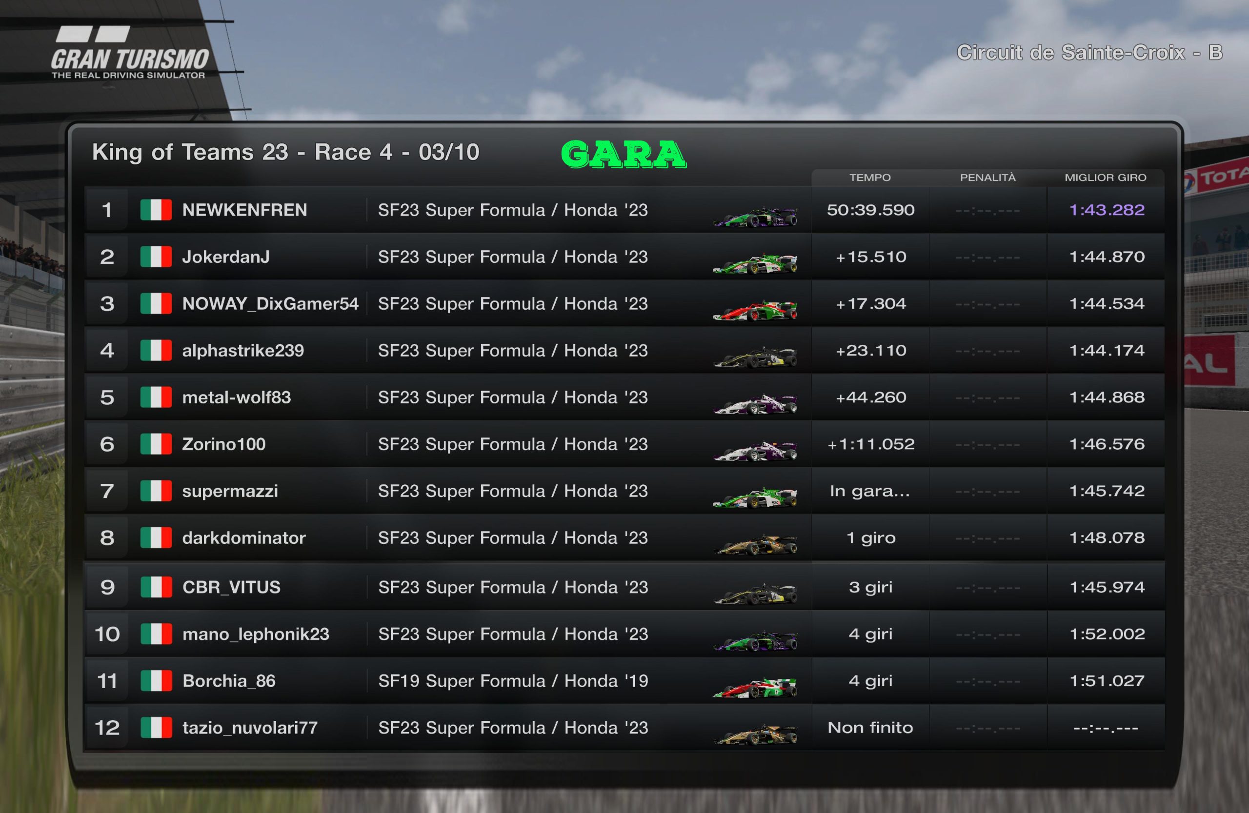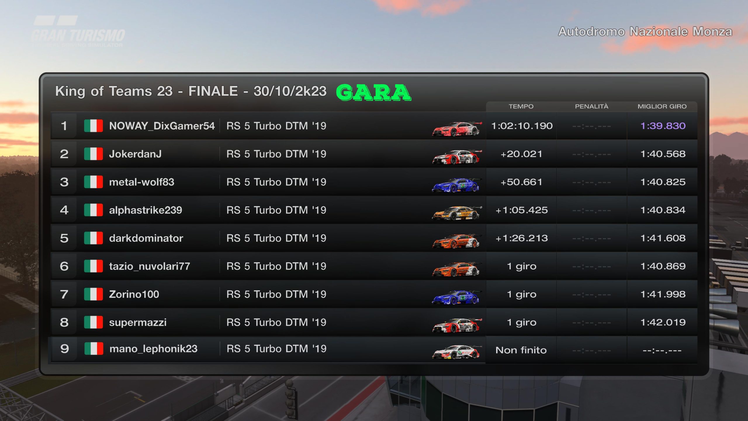 RACE 1 - MARTEDI 12 SETTEMBRE 2K23