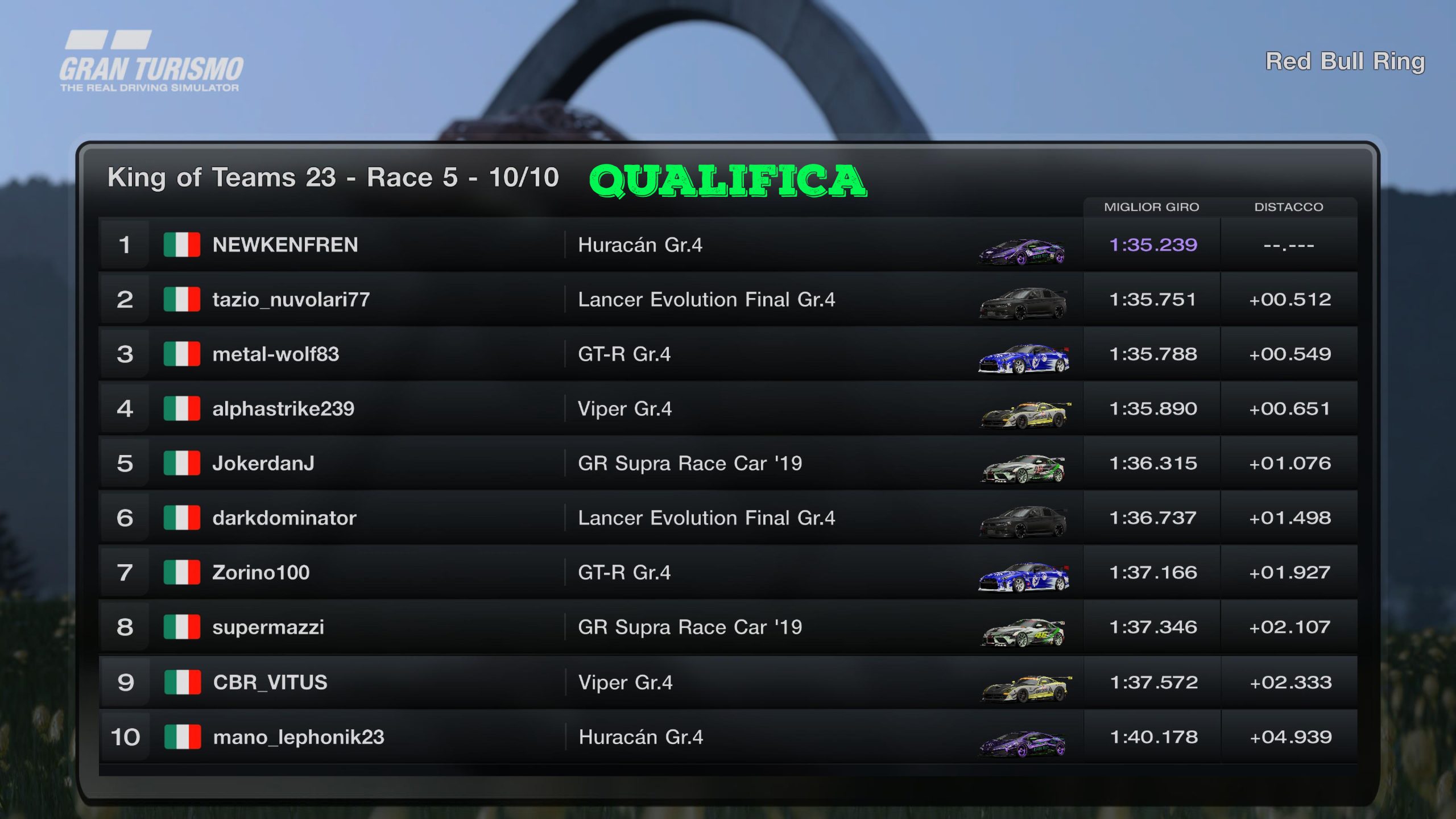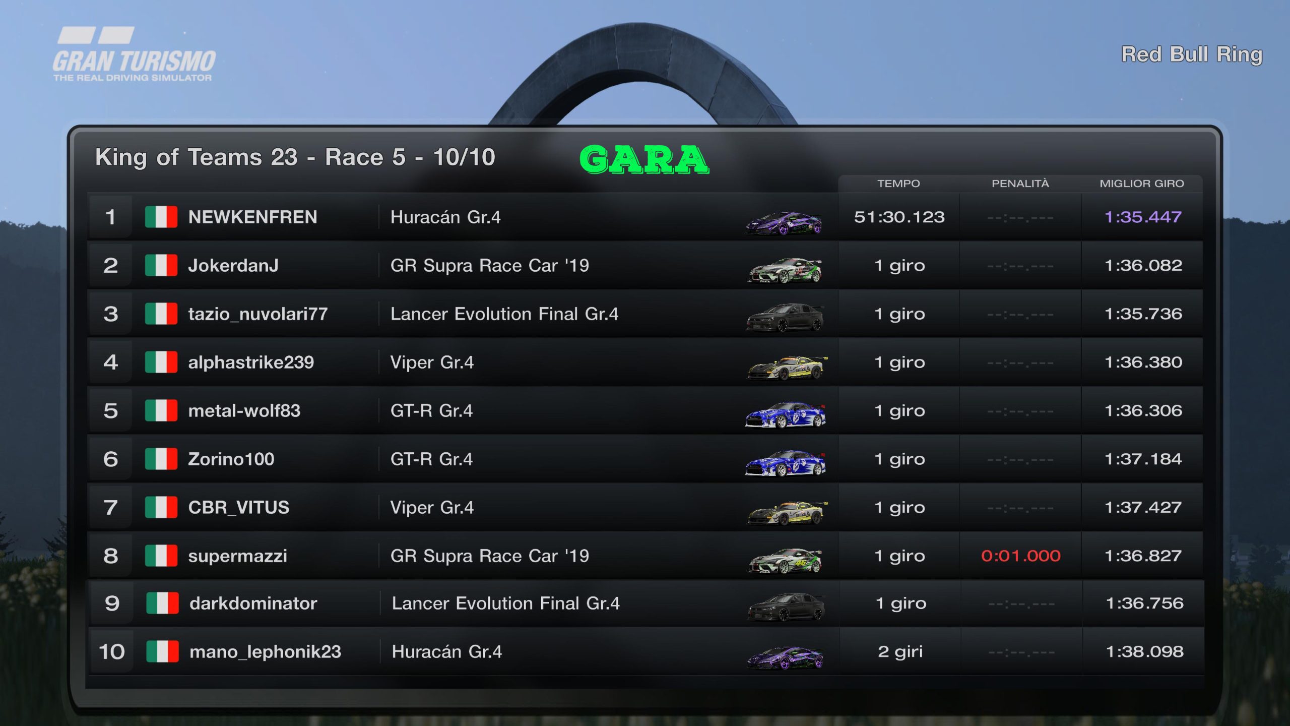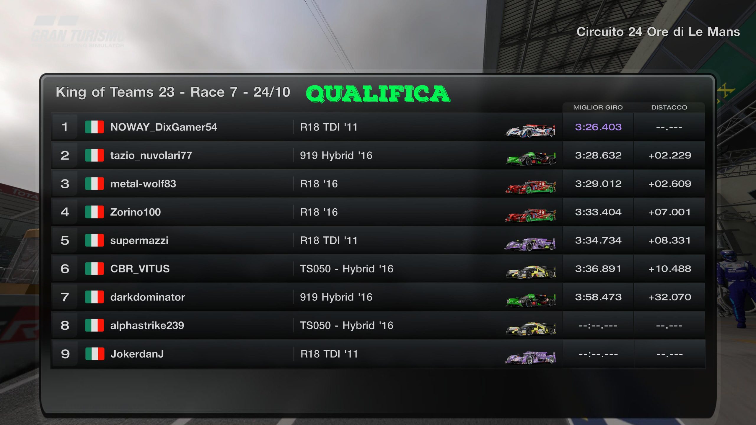 RACE 1 - MARTEDI 12 SETTEMBRE 2K23