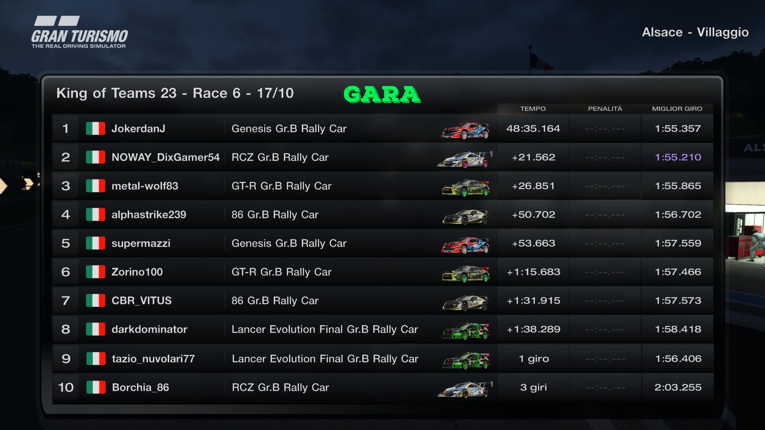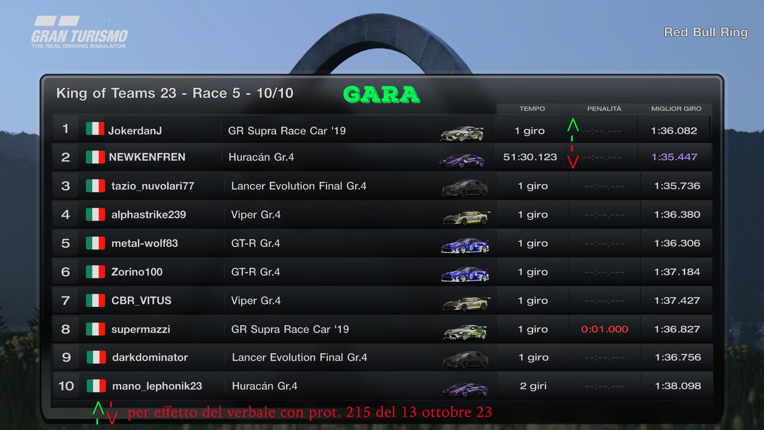 RACE 6 - MARTEDI 17 OTTOBRE 2K23