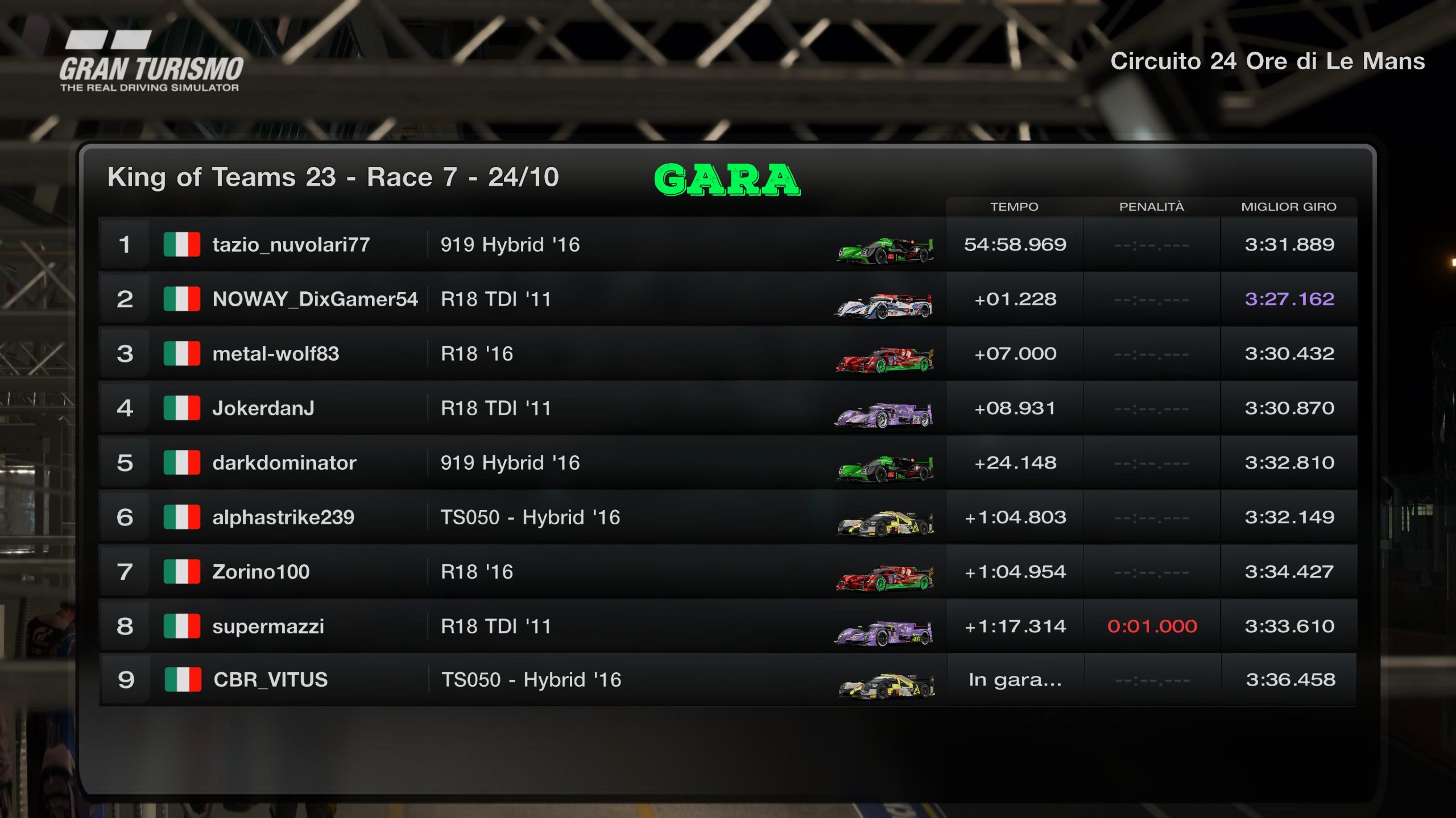 RACE 7 - MARTEDI 24 OTTOBRE 2K23
